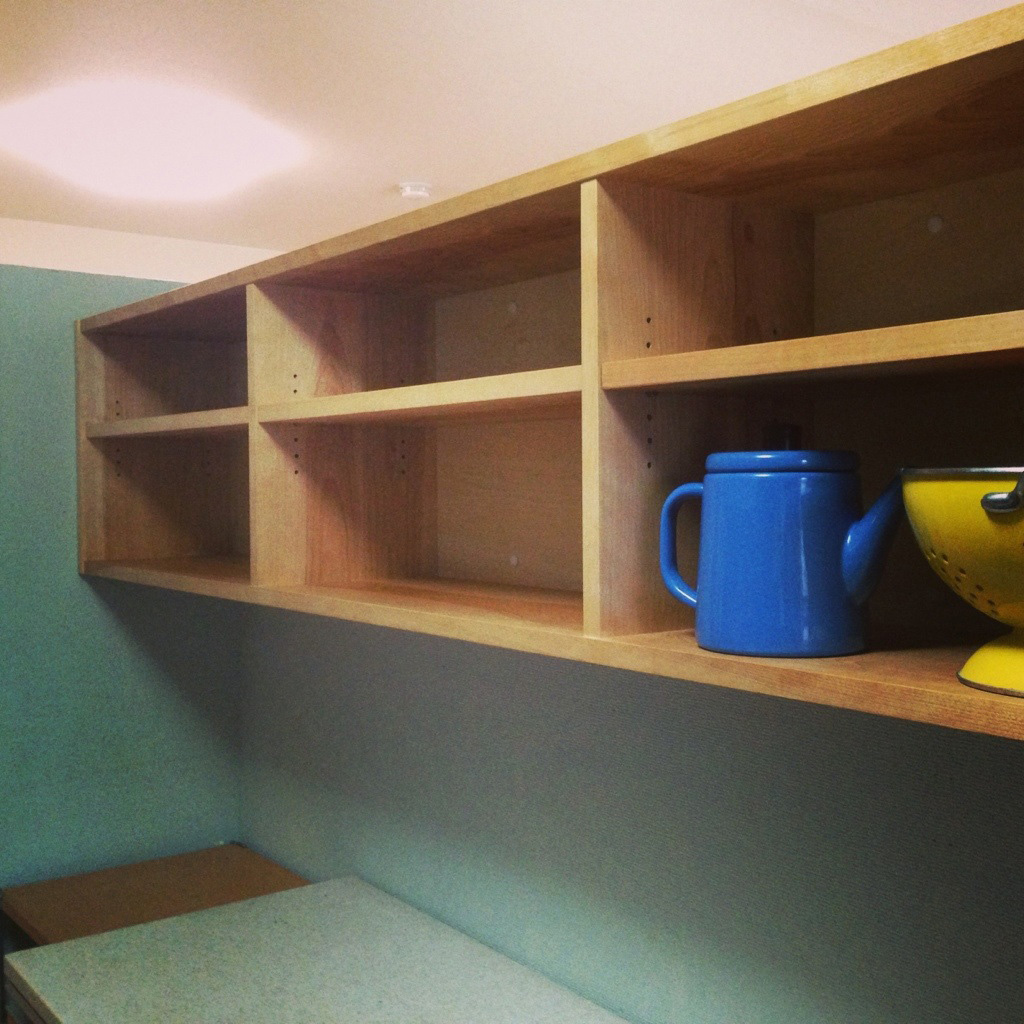 キッチンのプランにも色々あります。リビングやダイニングから見える場合、壁で目隠しされている場合など。今回は後者のキッチンに収納棚を取付けです。リビングから見えないため扉で隠す必要はありません。よく使うお気に入りの物を並べ雰囲気と合わせてキッチンのクオリティを上げましょう。きっと家事がはかどりますよ!
