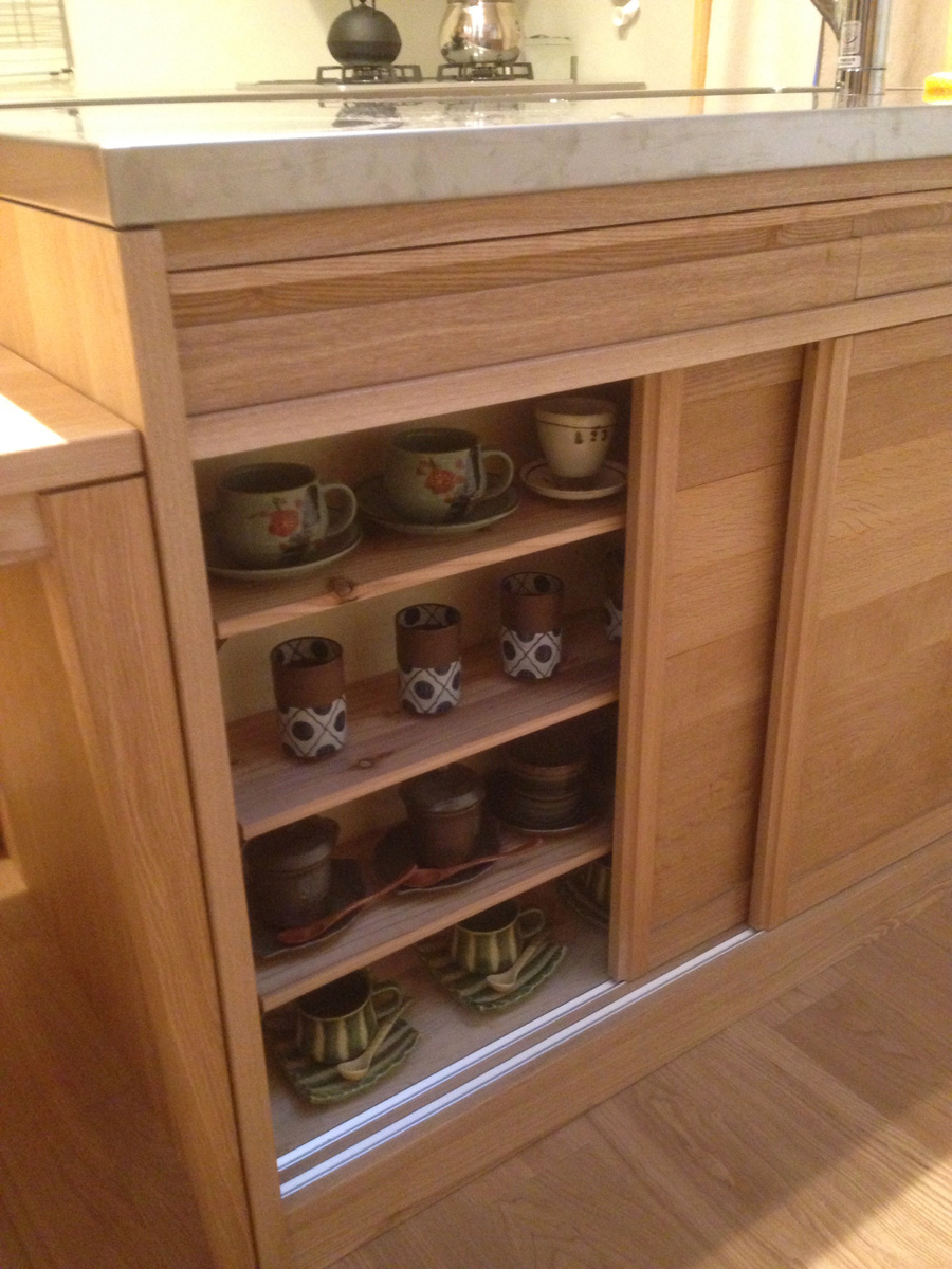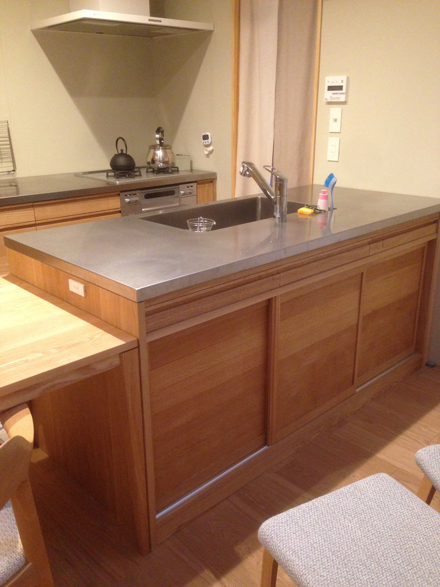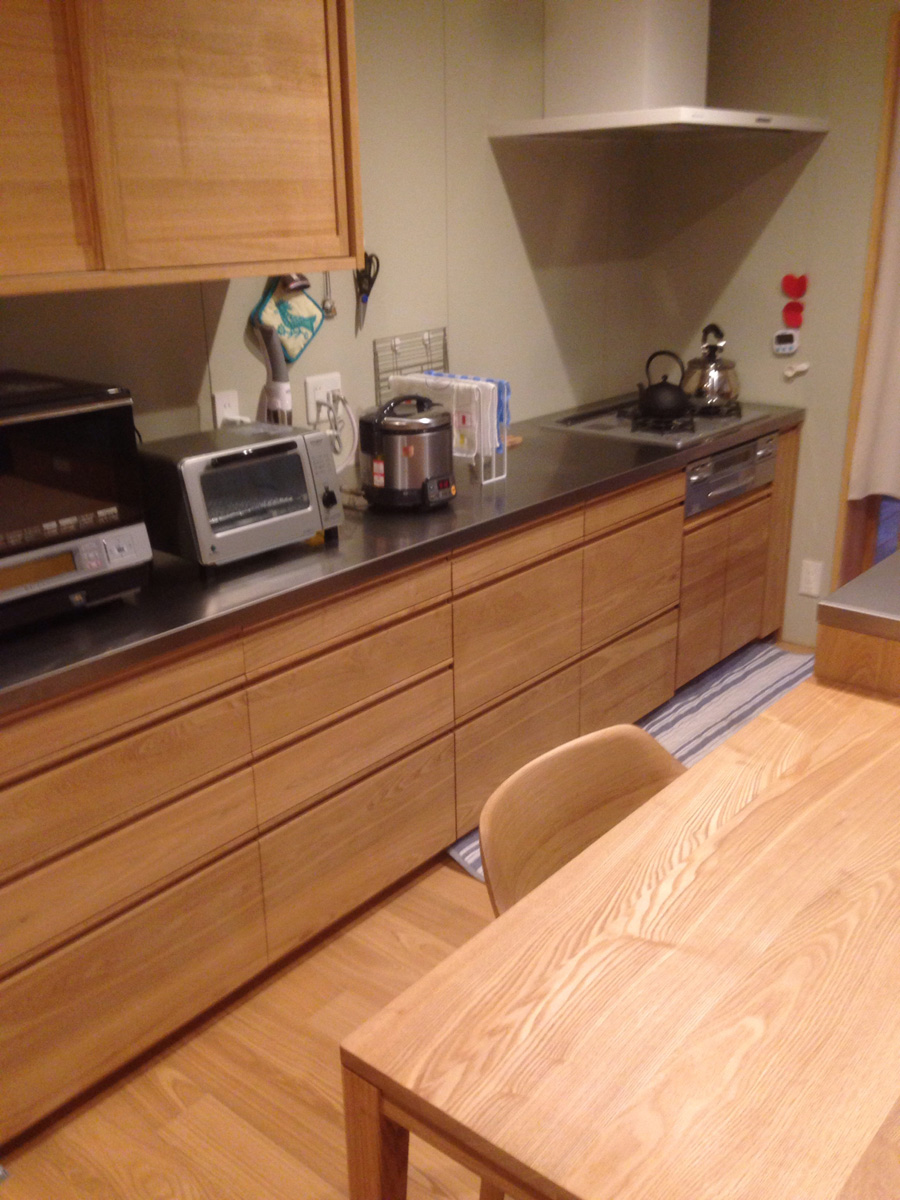 タモとステンレス。スッキリコンパクトに機能的に。とことん打ち合わせした結果、お持ちのものがしっかり収まりました!これもクライアントさんがお持ちのの鍋やら器のサイズをちゃんとまとめて伝えて頂いたからの賜物。感謝です。