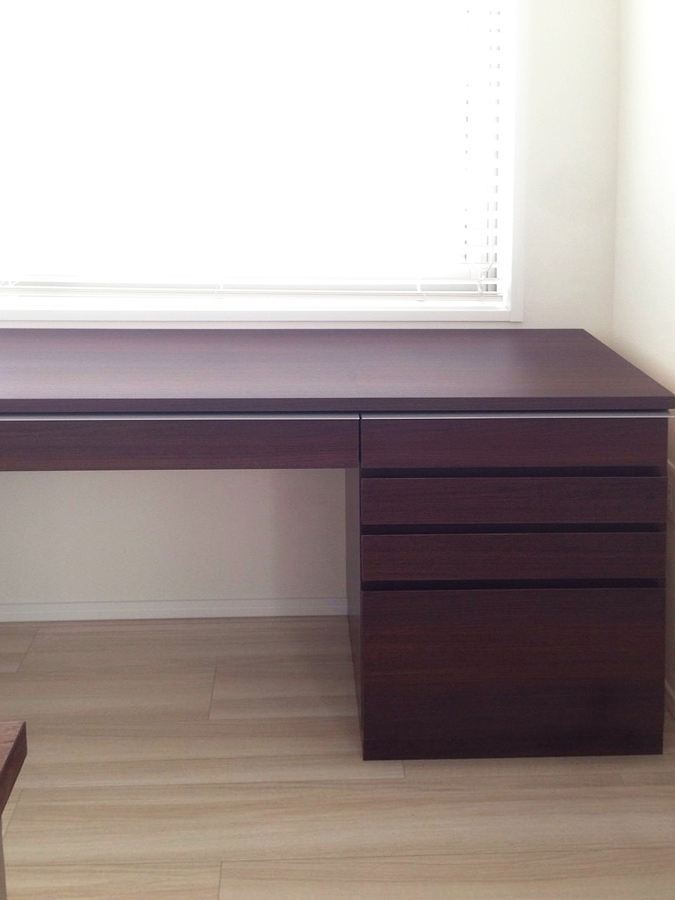 いつもの無垢材とは違った雰囲気のデスクです。