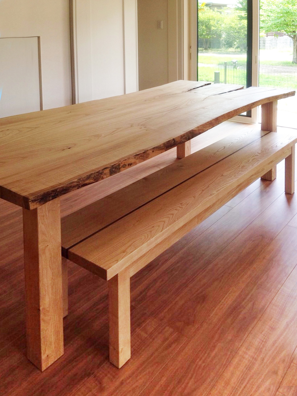 ベンチはテーブルの脚の間に収まるように設計しました。