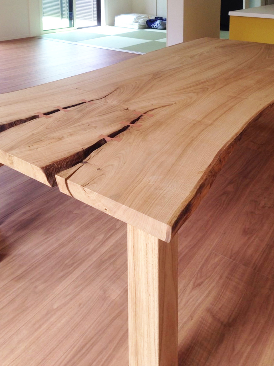 テーブルは一枚板に見えますが、一枚板は高額なので、