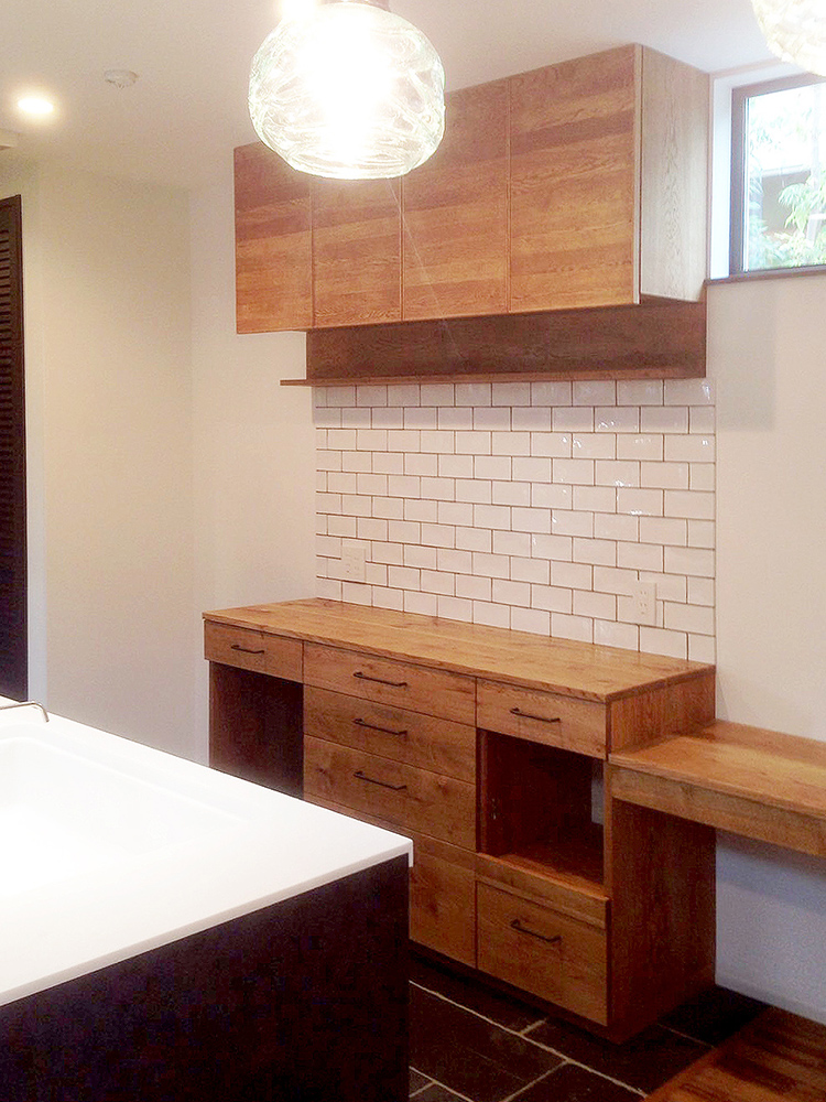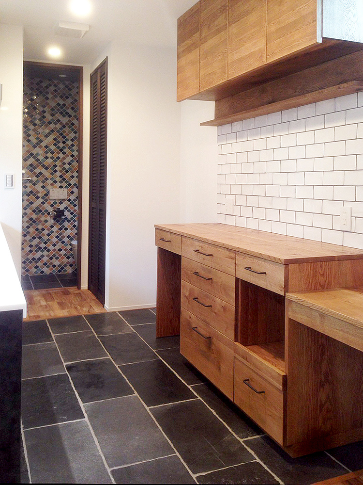 ゴミ箱スペースと引き出し式の炊飯器スペースも作成。