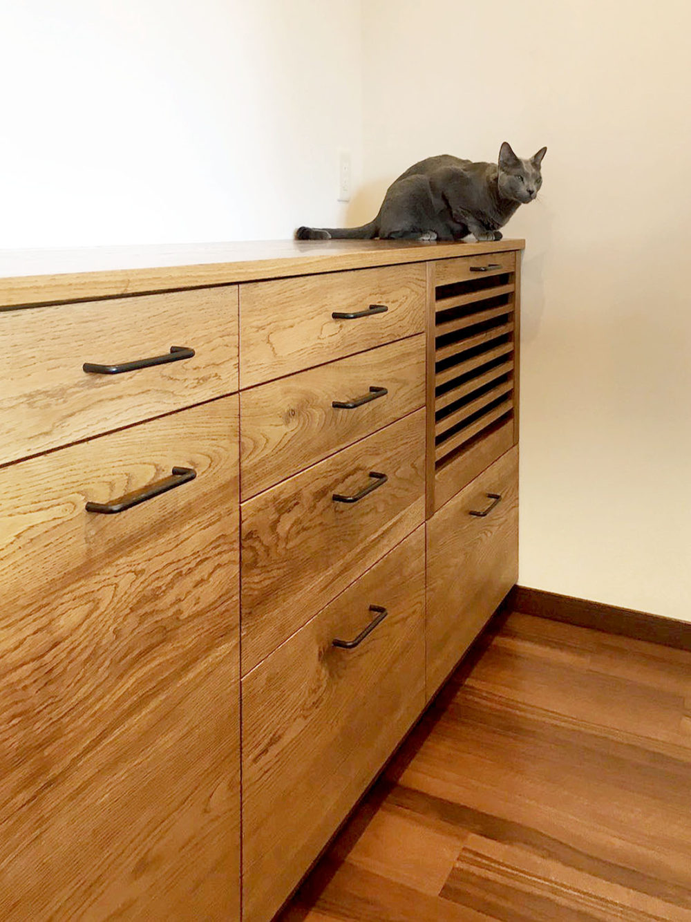 大阪北摂の南千里のお宅。オークのカップボードです。 サイズは幅1530の奥行き450。