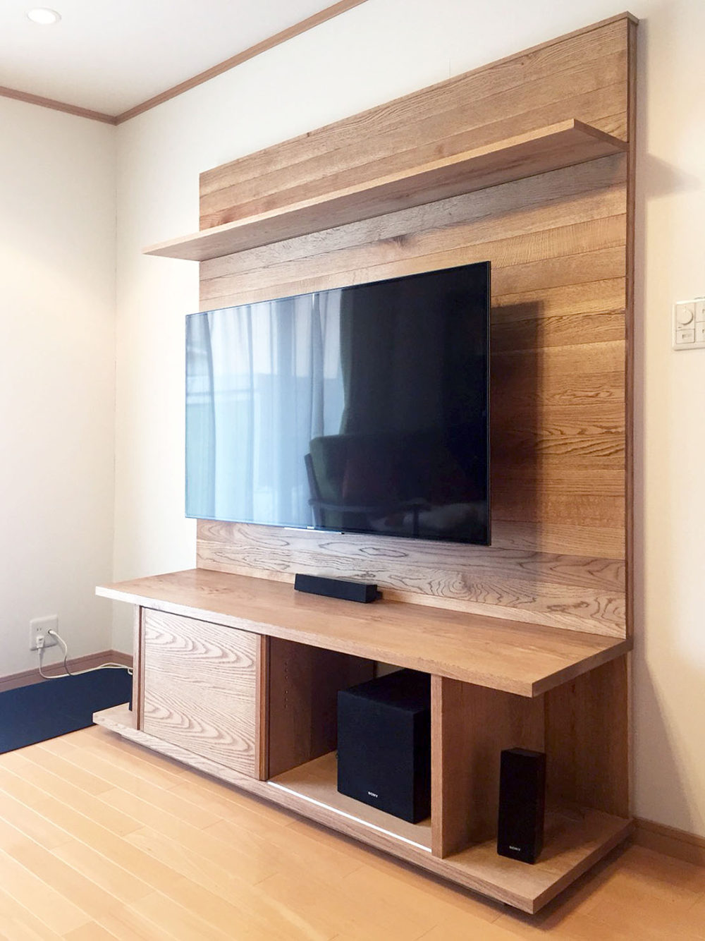 無機質になりがちなテレビ周りですが、木の温もりが感じられる空間になりました。