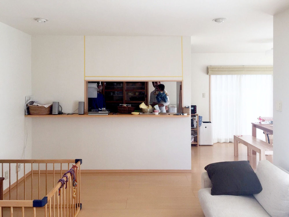 2枚目は改修前の様子。圧迫感のあった壁面を部分的に取り払い、開放感と無垢材の温かみをプラスし、新しいキッチンに生まれ変わりました。