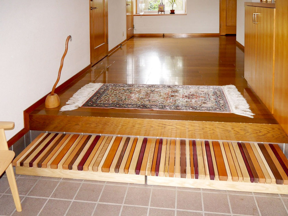 木の温かみがあるお住まいによく合っています。 玄関に入った時に、楽しい気分になると嬉しいです。