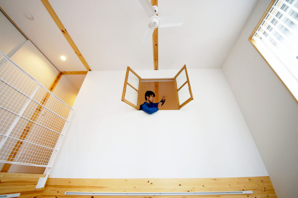 室内窓は明るさを取り込むだけでなく、開放感も生まれ、風通しの良い空間になります。 二階にいる家族とのコミュニケーションも生まれます。