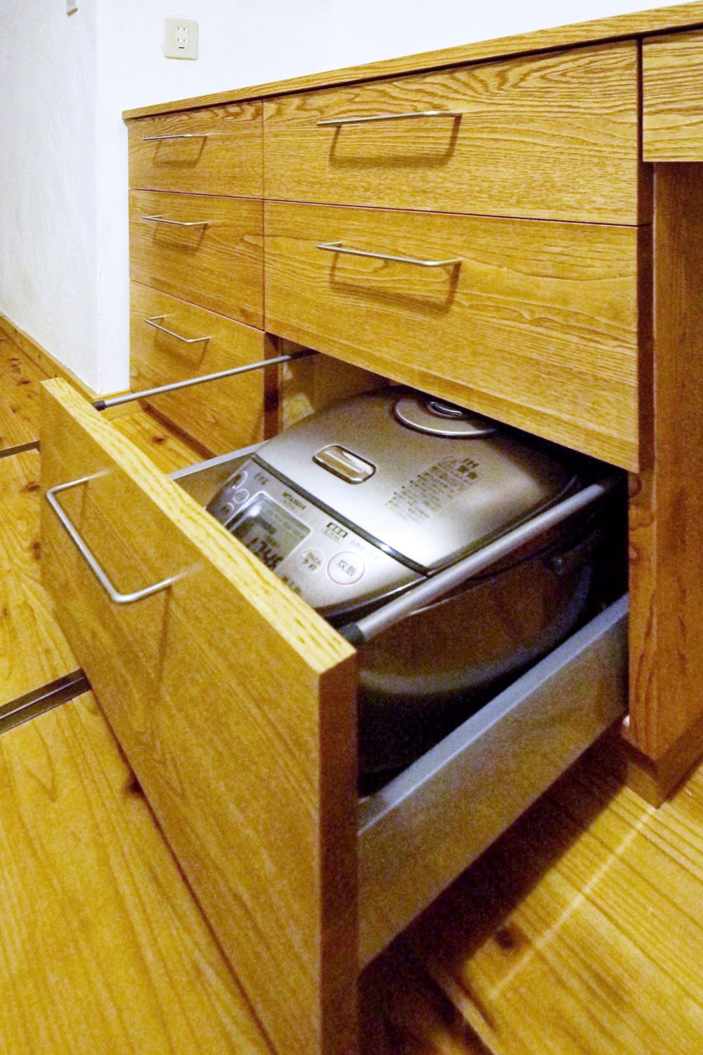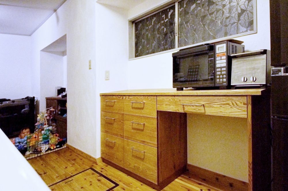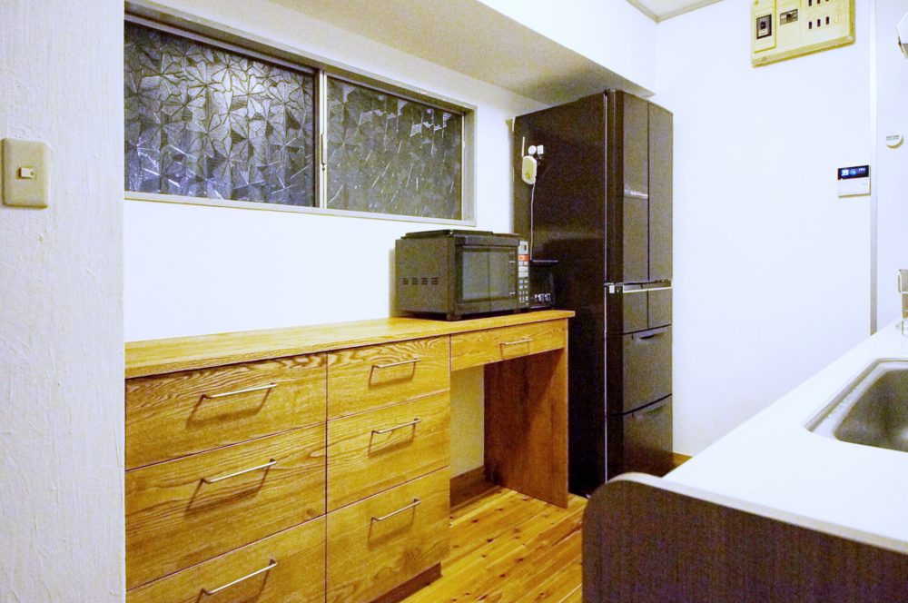 上部には窓があるため、シンプルに吊り戸棚無しの下段収納のみのタイプです。
