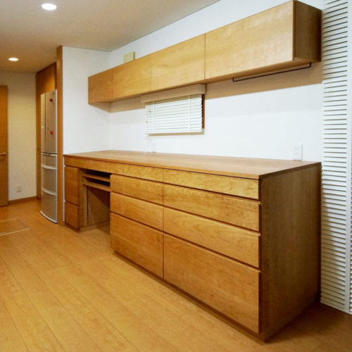 八尾市のお宅のチェリーの吊り棚です。下のカップボードは既存の […]