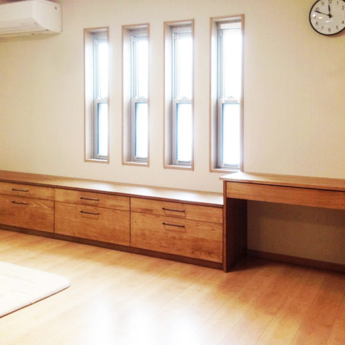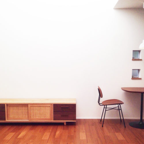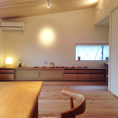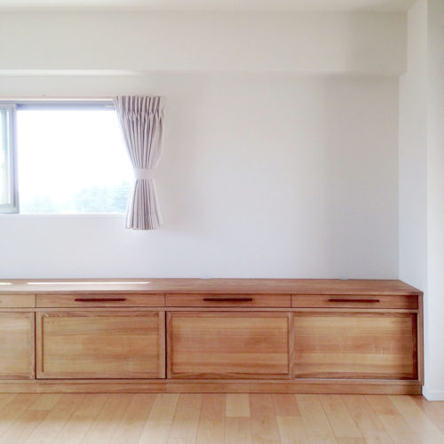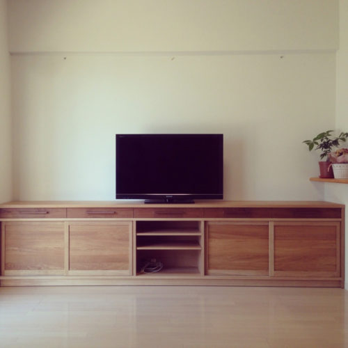 楢の長いTV台兼壁面収納です。漆喰壁とのバランスを考えてなる […]